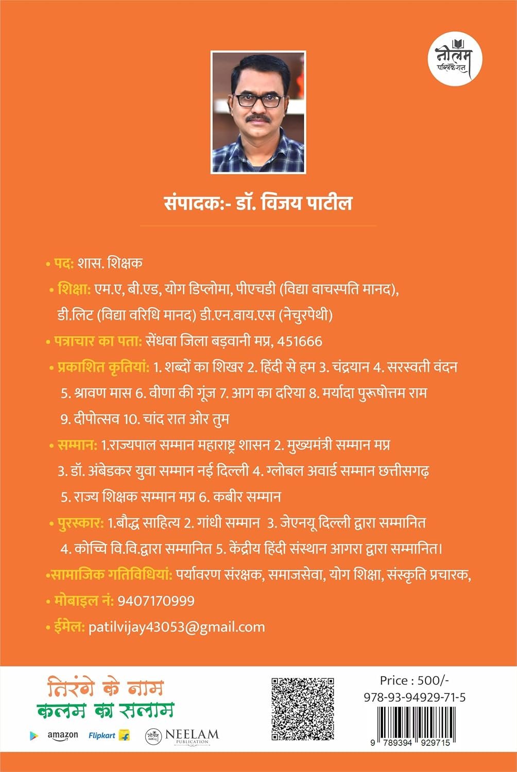 Tirange ke nam kalam ka salam Dr. Vijay Narayan Patil (Author)